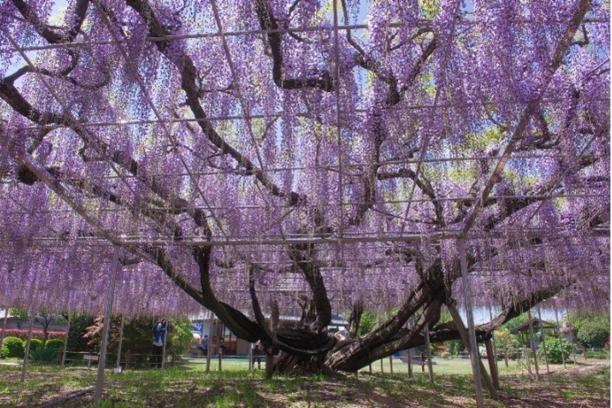 紫の花は流れ落ちるような滝で、花からは甘い香りがするのが特徴。