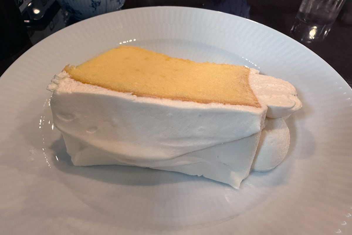 濃厚なクリームと程よい甘さの、ふわっふわなシフォンケーキ。注文してよかったなと思う一品でした。