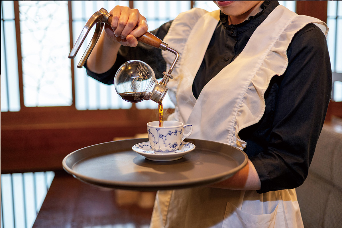 椿屋珈琲はサイフォンで淹れた珈琲を、目の前で注いでいただけます。