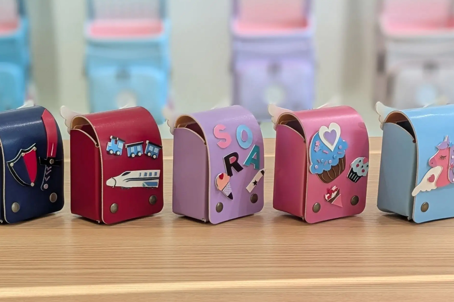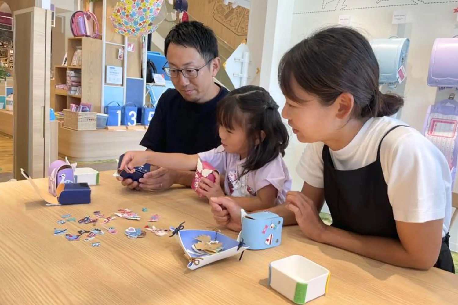 ワークショップでは、小さなランドセルを組み立て、店舗ごとに用意されたオリジナルのパーツシールでデコレーション。自分だけの「はねランド」を完成させることができます。