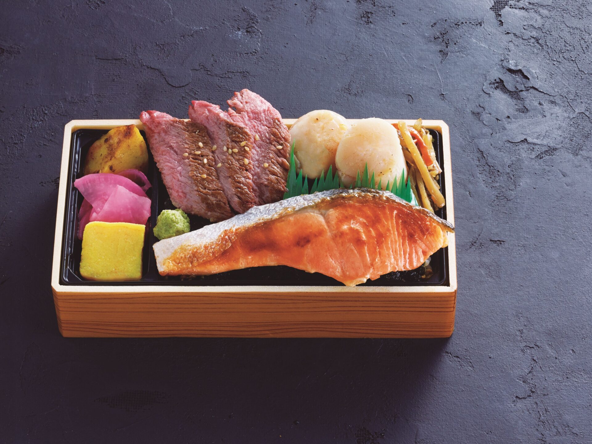【中川町】道の駅なかがわ/道産鮭・猿仏産ほたて・道産牛のステーキ弁当(1折)…3,780円<各日限定20折>