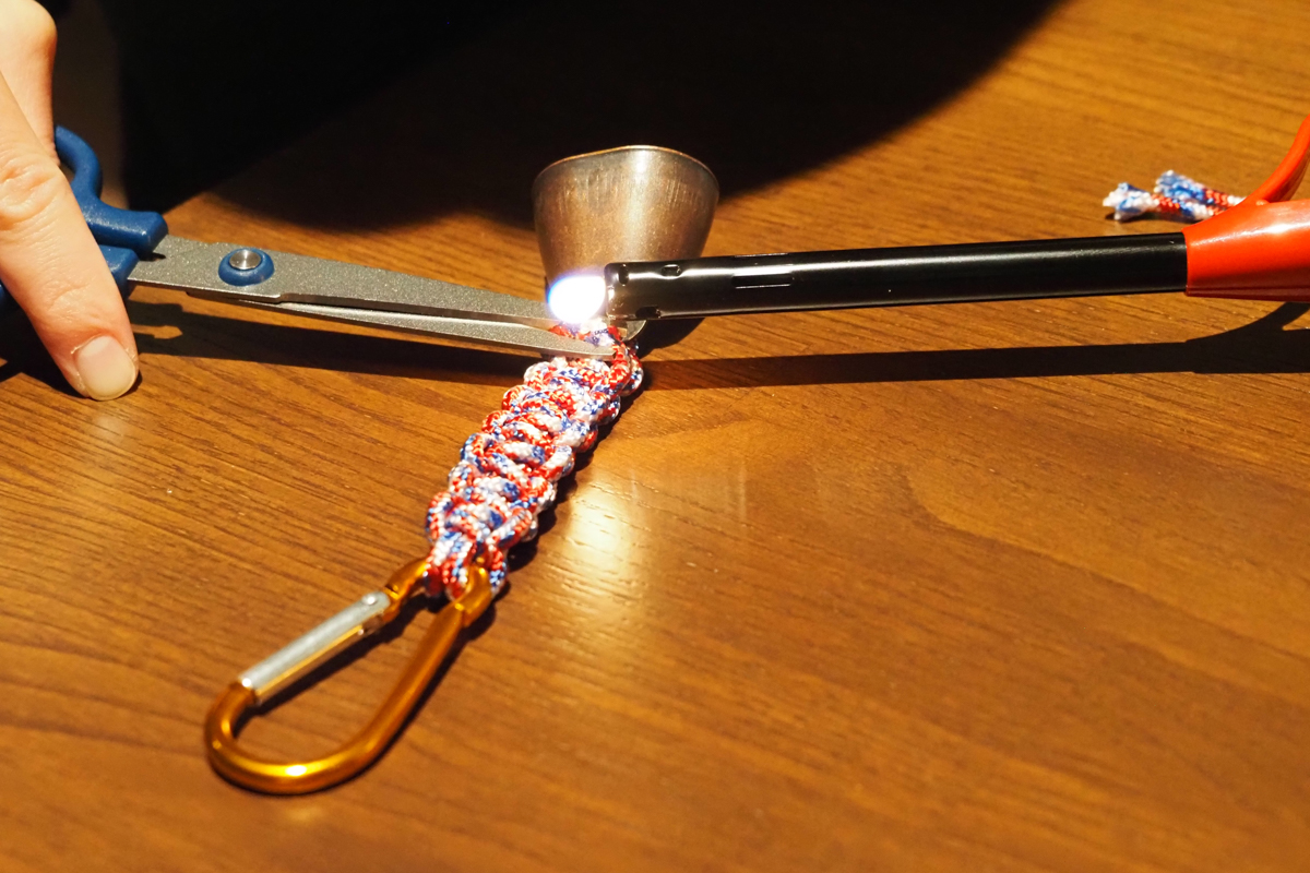 最後にスタッフさんに紐の先を火であぶってもらい、紐をくっつけて完成!子どもでも十分楽しめるアクティビティなので、家族全員でお揃いにしてみてはいかがでしょうか…?