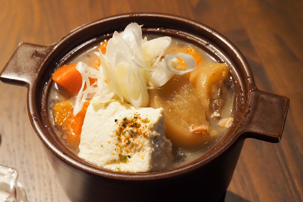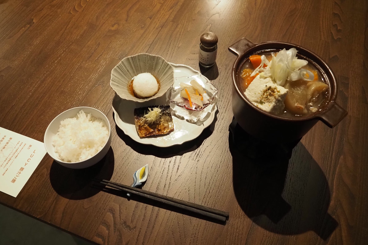 大きめの豚肉に巨大な豆腐、お野菜たっぷりの豚汁。麦と米の合わせ味噌でコクのある味噌汁の中に、ごろごろ入っている野菜が食べ応えたっぷり。とろとろの大根に人参、大きなお肉…最高でした。