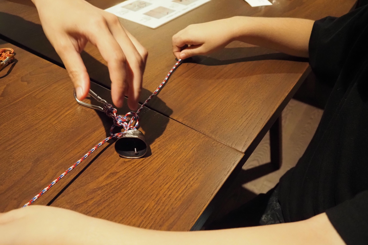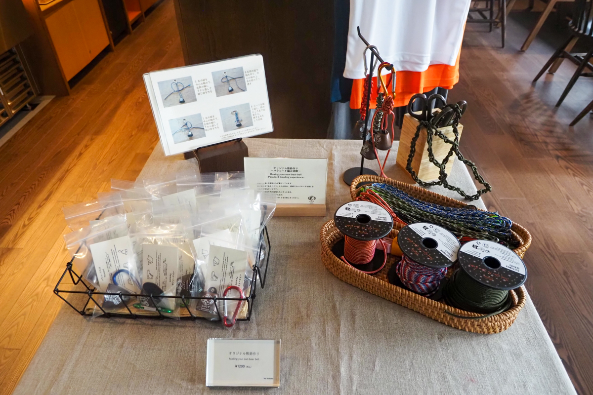 星野リゾートといえば「宿泊施設内でのアクティビティ」。LUCY尾瀬鳩待では、ラウンジでオリジナルの熊鈴作り(パラコード編み)が楽しめます(1つ1200円)。
