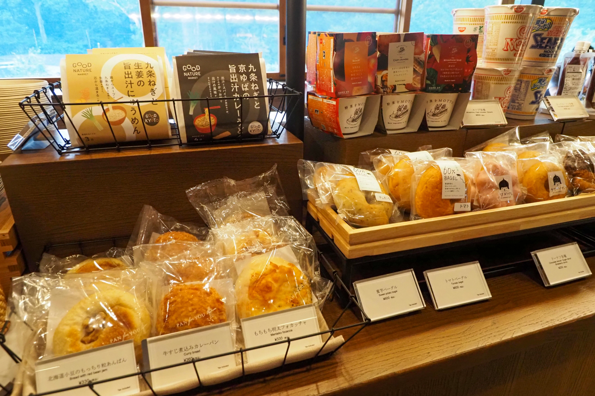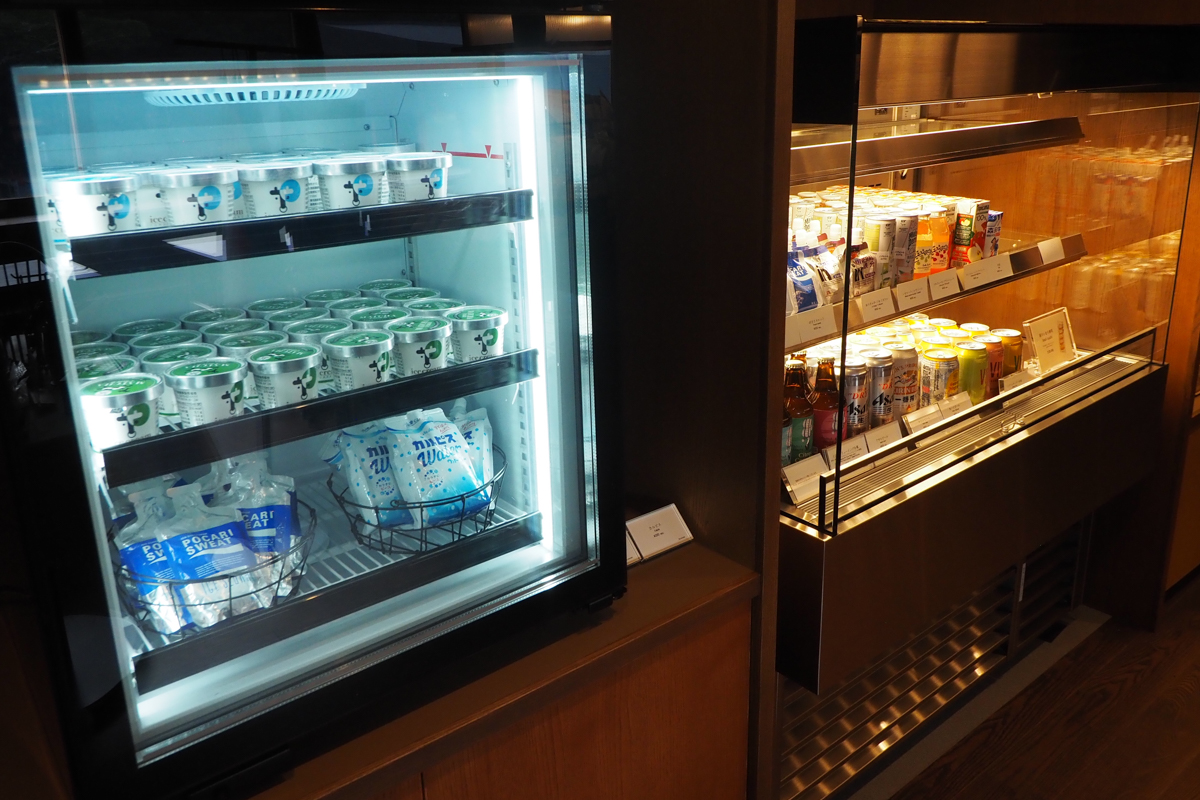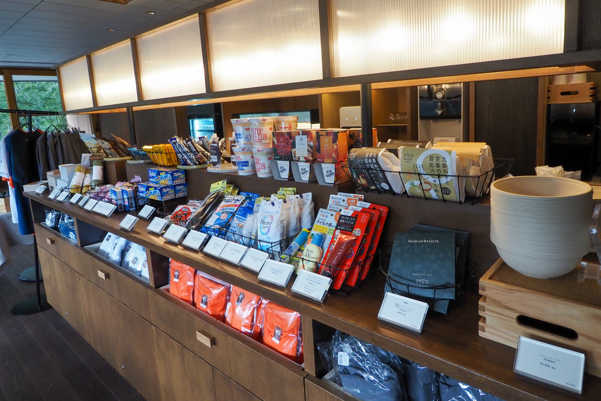 ホテル内にあるラストコンビニ「Food & Drink Station」では食事やドリンク・アルコール類、Tシャツやマグカップなどのオリジナルグッズ、その他こまごまとした山であると便利なものが販売されています。