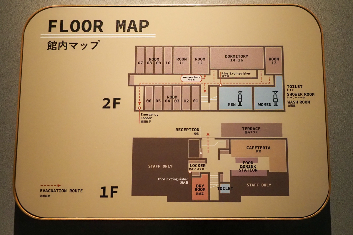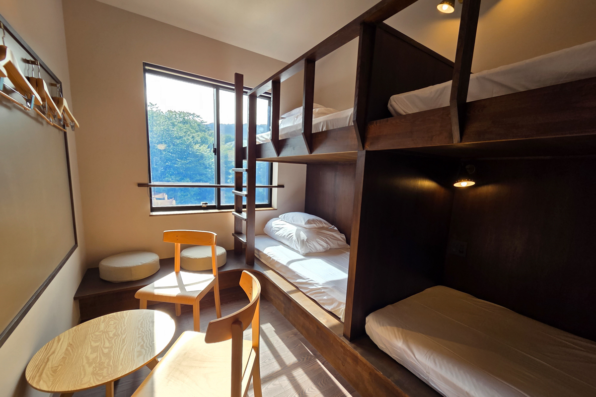 客室は「フォースルーム(3室)」「ツインルーム(10室)」「ドミトリー(12室)」の3種類です。全室に金庫がついており、ドミトリー以外には冷蔵庫があります。