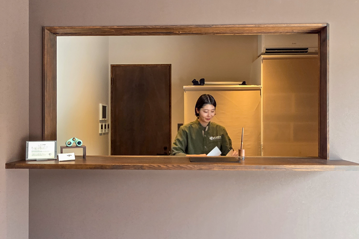 それではいよいよ中に入りましょう。ガラスの引き戸を開けるとすぐ右にフロントがあります。