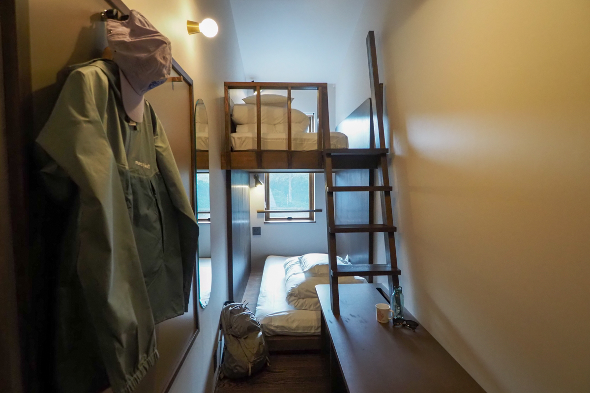 コンパクトなツインルームは上下段に分かれて寝ます。家族で2室予約して泊まるのもありかも。