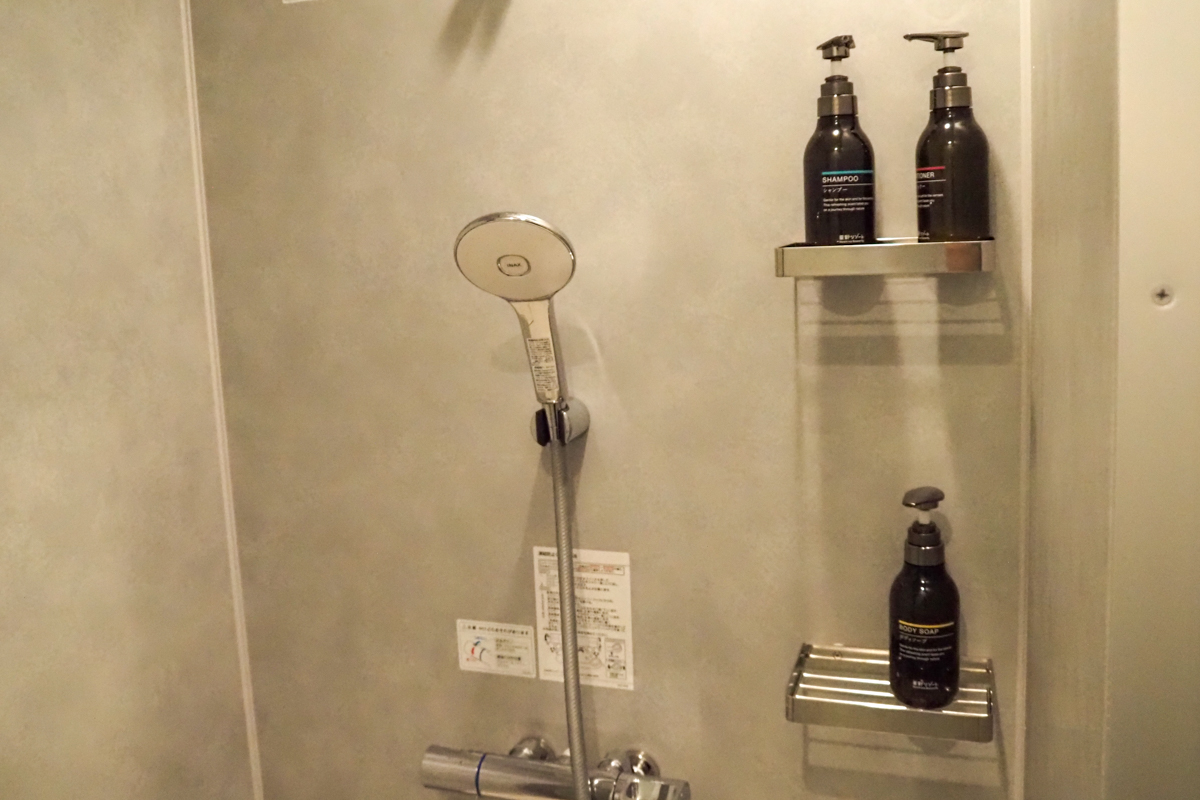 シャワーの水の出はしっかりしており、全く不便を感じませんでした。シャンプー、リンス、ボディーソープは星野リゾートのほかの施設でも使われているものなんだとか。