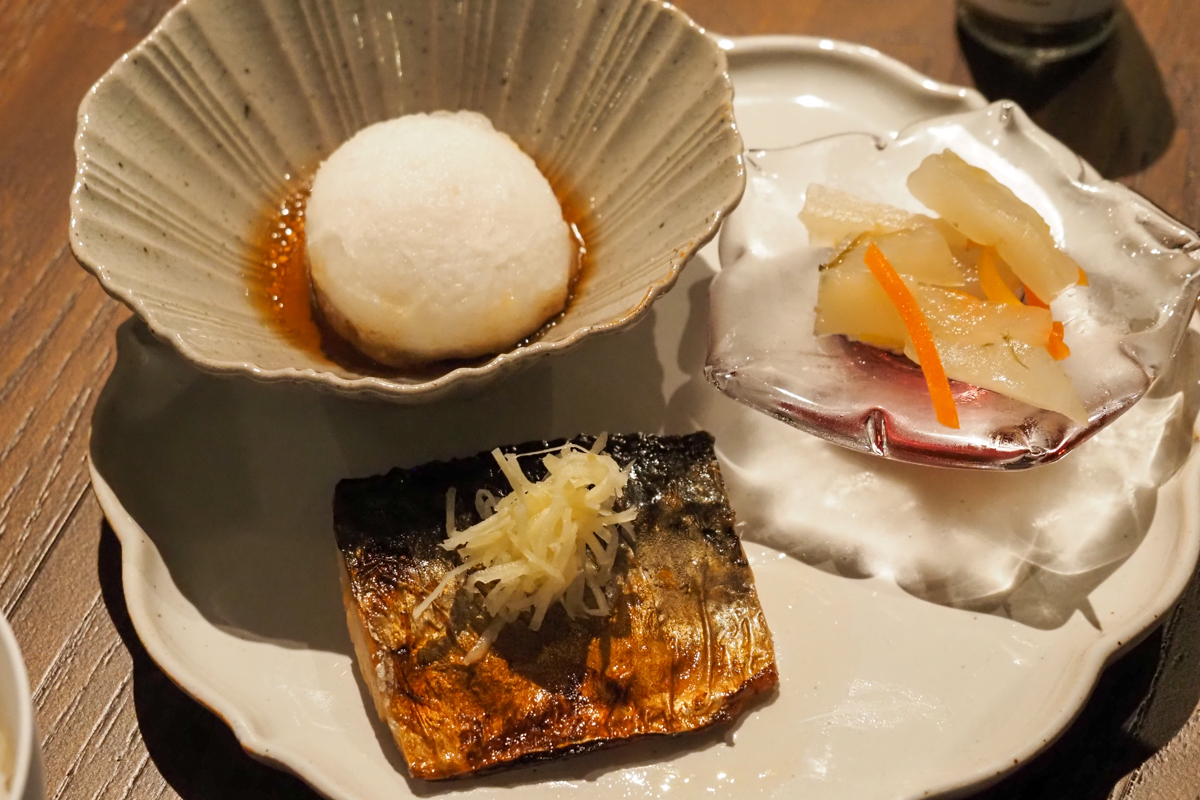 さらに半熟卵の揚げ出し、鯖の焼き浸し、香の物もついてきます。半熟卵の揚げ出しは、息子に大ヒット!ご飯の上にのせて卵かけごはんのようにして食べていました。