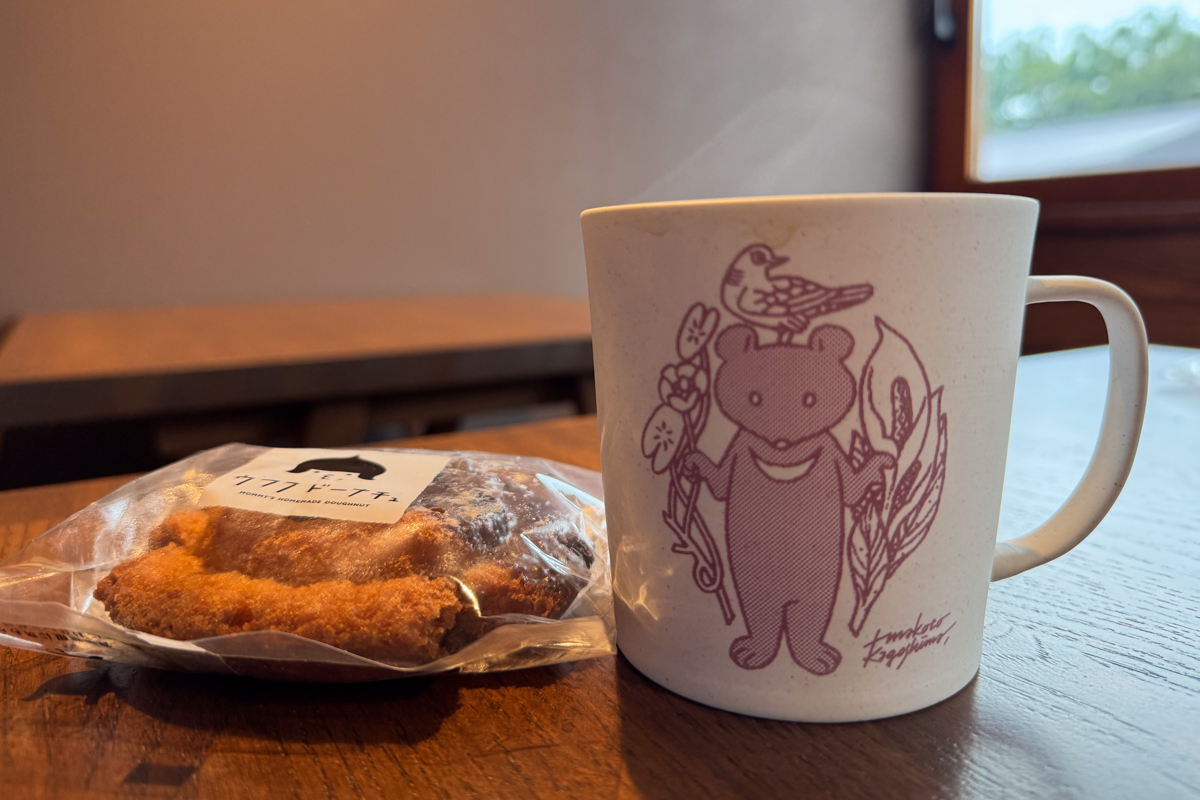 かわいらしいカップでコーヒーも購入できます。朝5時半起きだったので、朝ごはんと一緒にコーヒーが飲めるのは本当にありがたかったです。