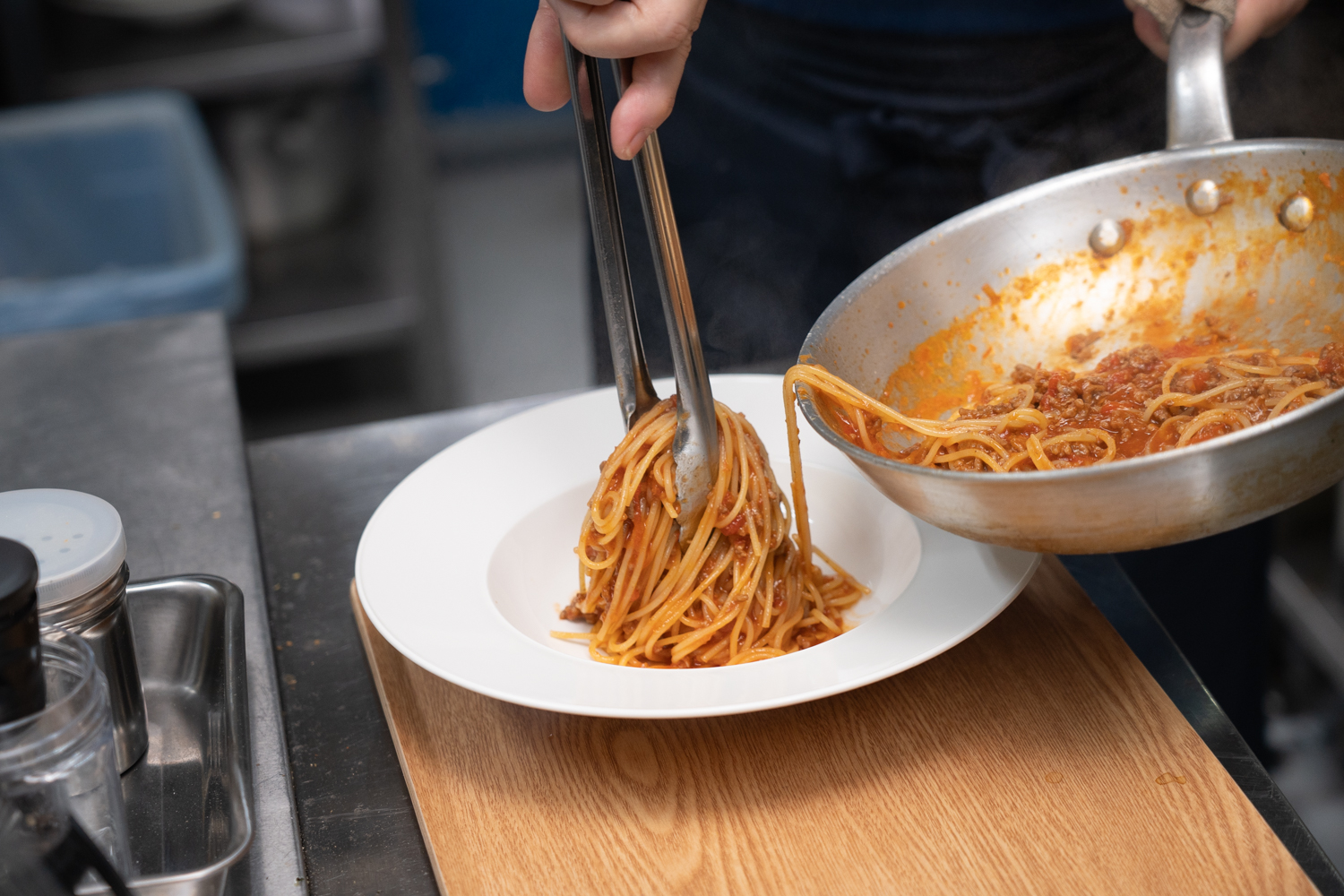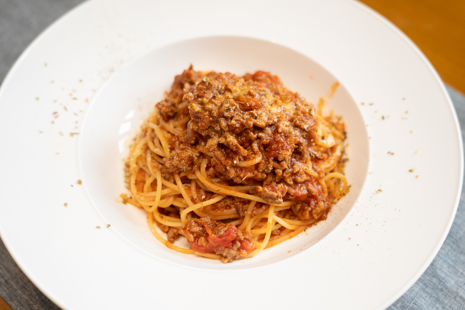 白いお皿に盛られたボロネーゼは、見た目にも迫力満点。