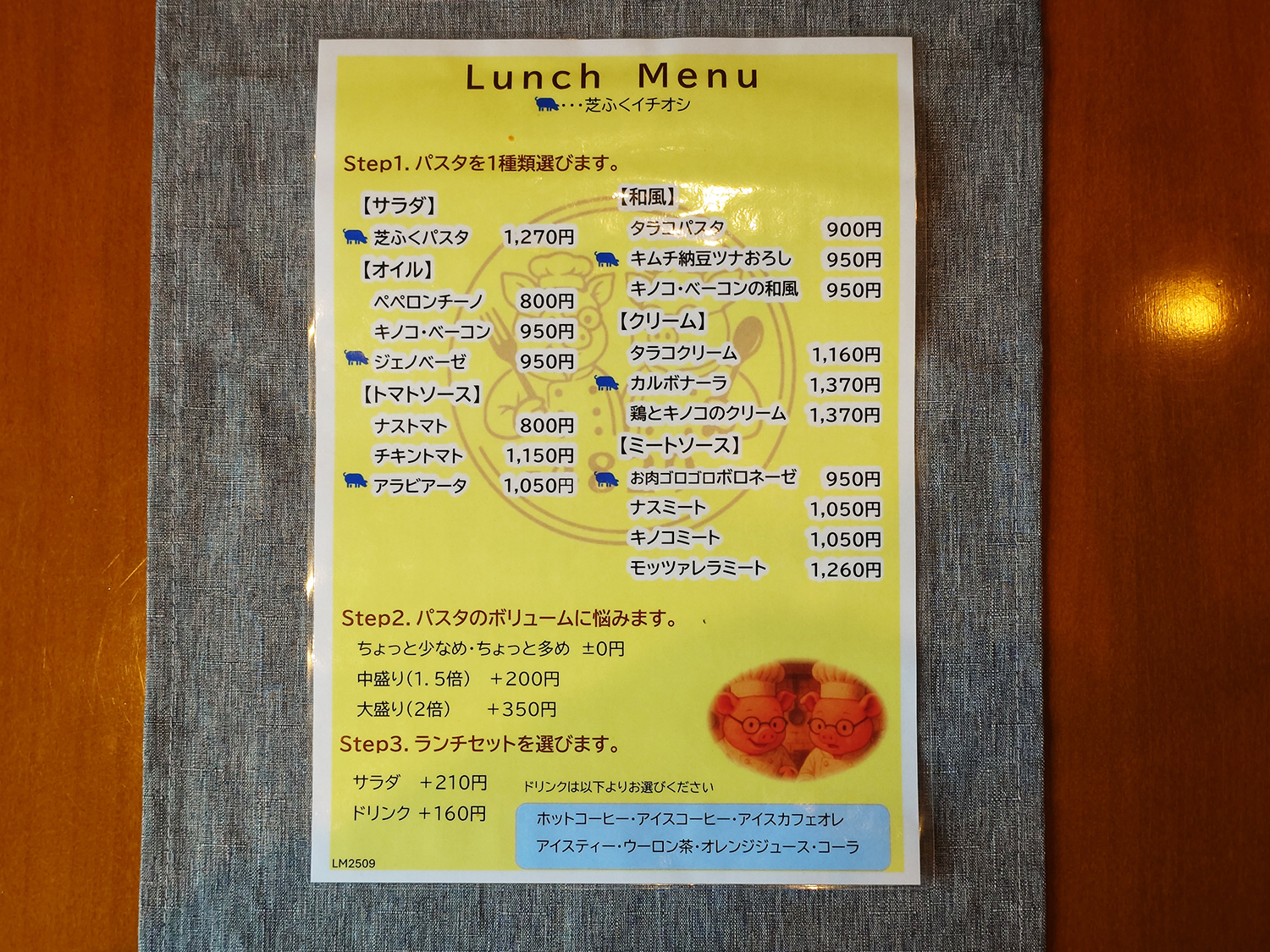 ランチタイムは、パスタのメニューが17種類ほどあります。