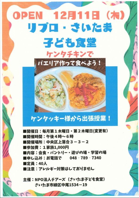リプロ・さいたま子ども食堂は12月11日OPEN!