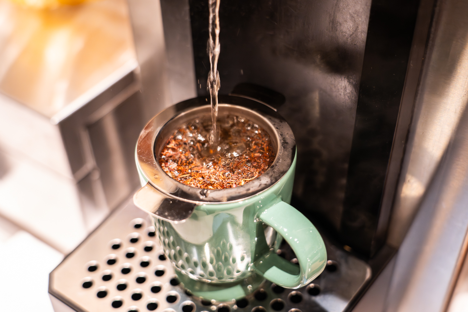 茶葉を入れた専用茶器にお湯を注ぎ、しばらく待ちます。そして、蓋をあけた瞬間に立ち上る湯気と共に広がる香りが、食事の合間のリフレッシュや、食後のデザートタイムを最高のご褒美に変えてくれます。