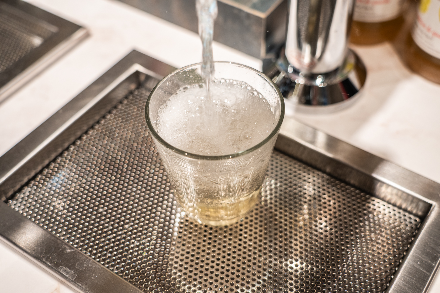 シロップのボトルには「3 push」と目安が書かれていますが、その日の気分や料理に合わせて濃度を微調整できるのも、このシステムならではの醍醐味です。シュワシュワと弾ける炭酸の中でシロップが溶け合い、自分だけの一杯が出来上がる瞬間は、大人でも思わずワクワクしてしまいます。