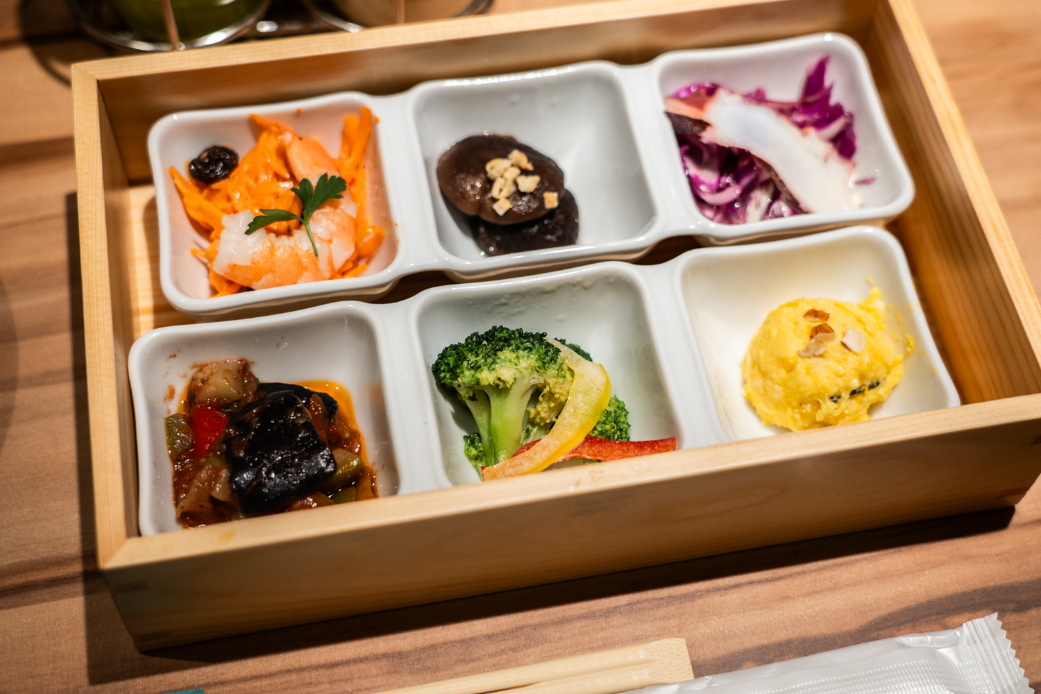 「今日は思い切り贅沢したい!」という日に選んでほしいのがCセット。運ばれてきた瞬間に歓声が上がるのが、この「デリBOX」です。宝石箱のような箱を開けると、中には彩り豊かな冷菜や前菜がぎっしり。