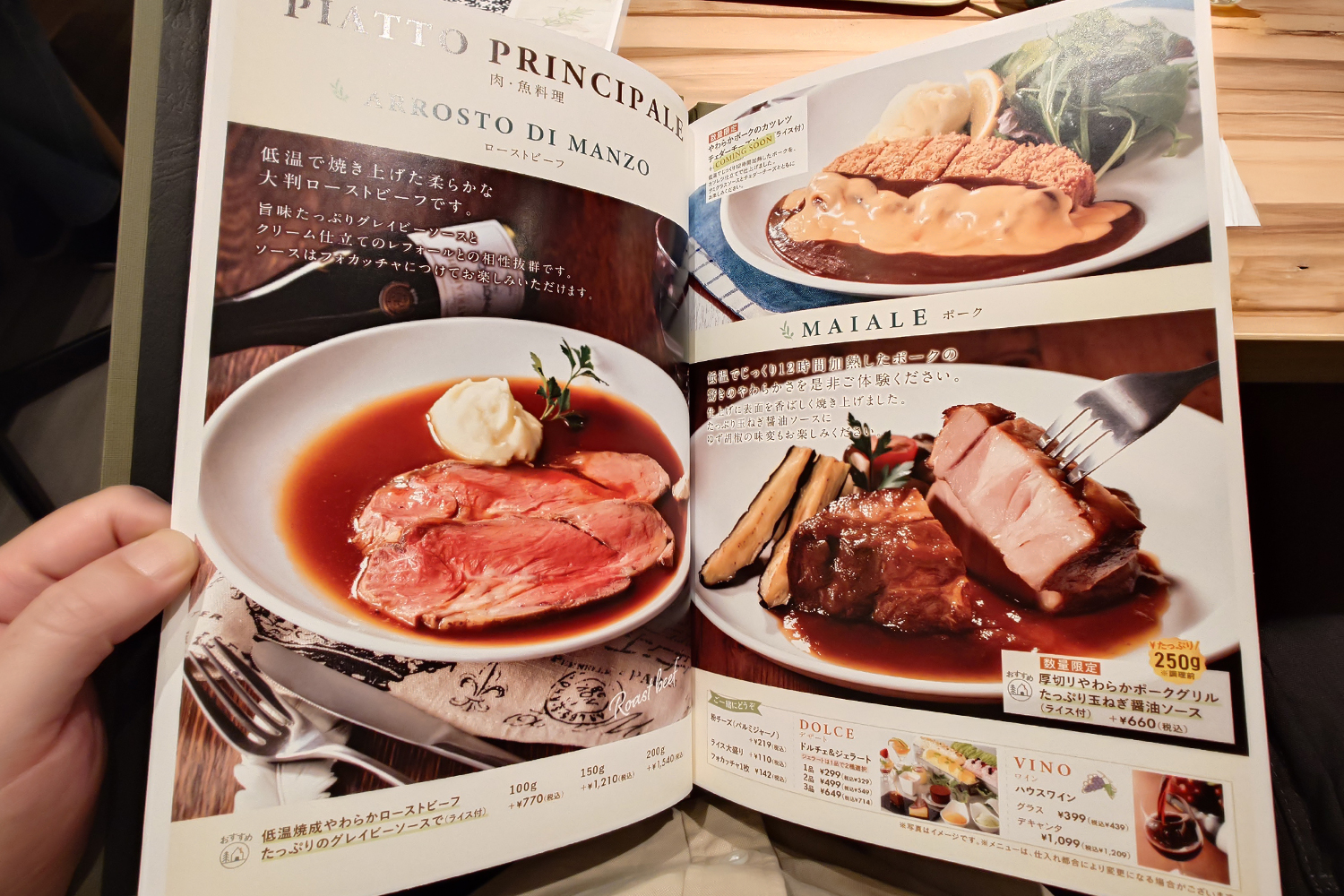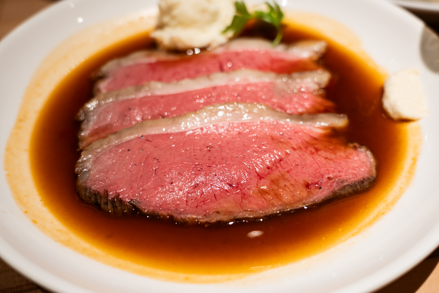 ディナーにだけ登場する、食べたら驚くこと間違いない料理が「ローストビーフ」です。運ばれてきた瞬間の、美しいピンク色の断面に目を奪われました。