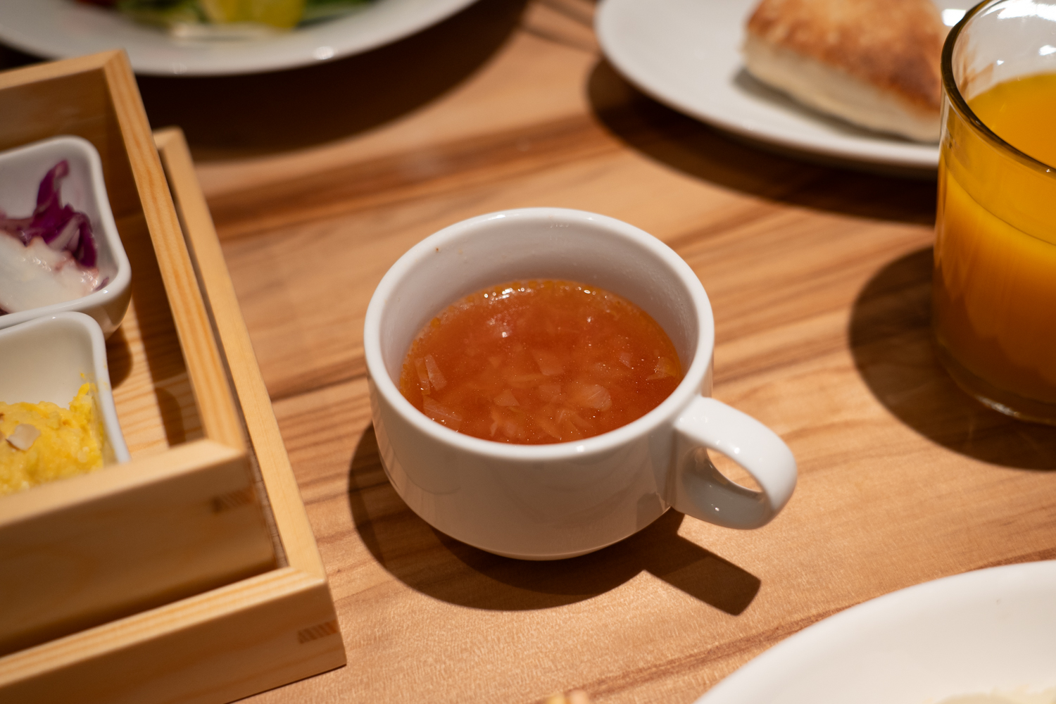 メイン料理に勝るとも劣らない存在感を放つのが、セットに含まれるフォカッチャ、サラダ、そしてスープです。これらは決して「おまけ」ではなく、一つひとつにリゾートレストランらしいこだわりが凝縮されています。