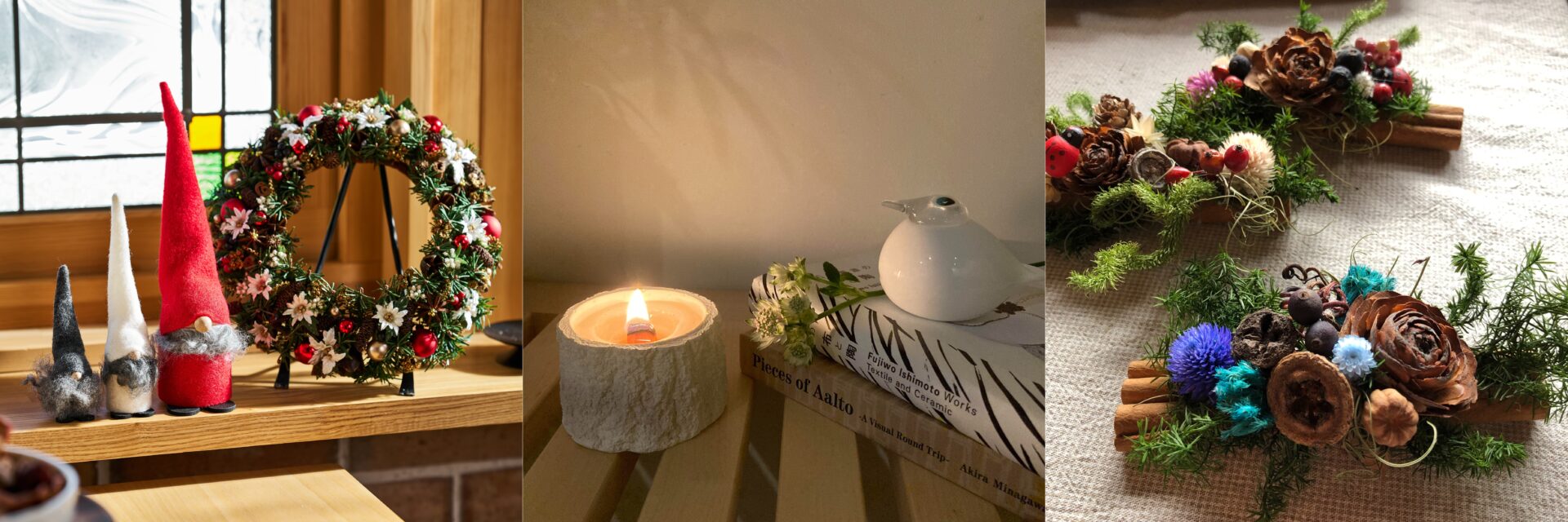 クリスマスマーケットでは約20店舗の店がずらりと並び、北欧デザインの雑貨やヴィンテージ、キャンドル、かわいらしいアクセサリーなど、北欧らしい自然を生かした品々がずらりと並びます。クリスマスの特別な贈り物を見つけるのにぴったりです♪