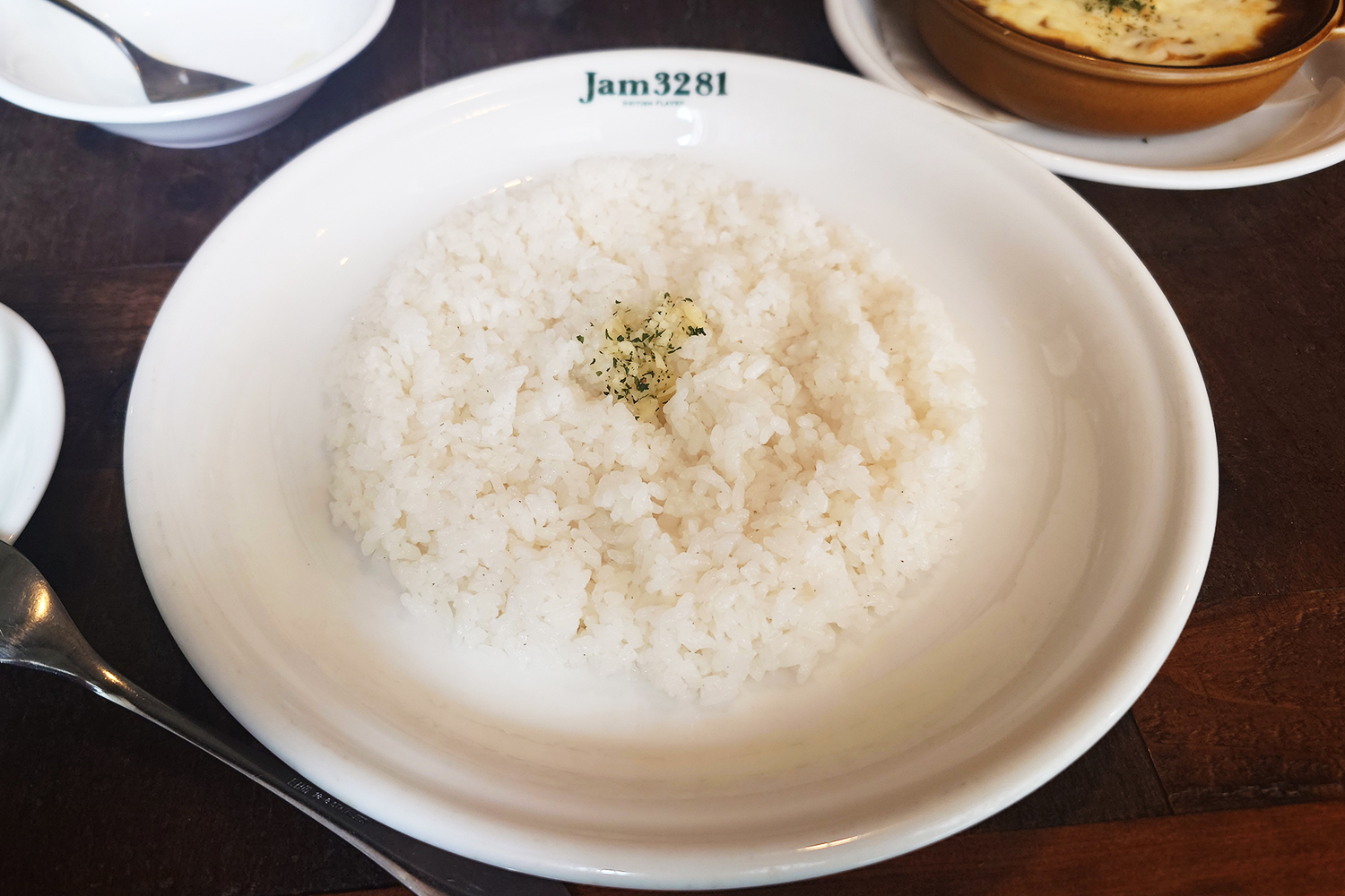 ライスはふっくらで、中央にはほんのりバター。このバターがまた、いい仕事をします。全体のコクが一段上がるんです。