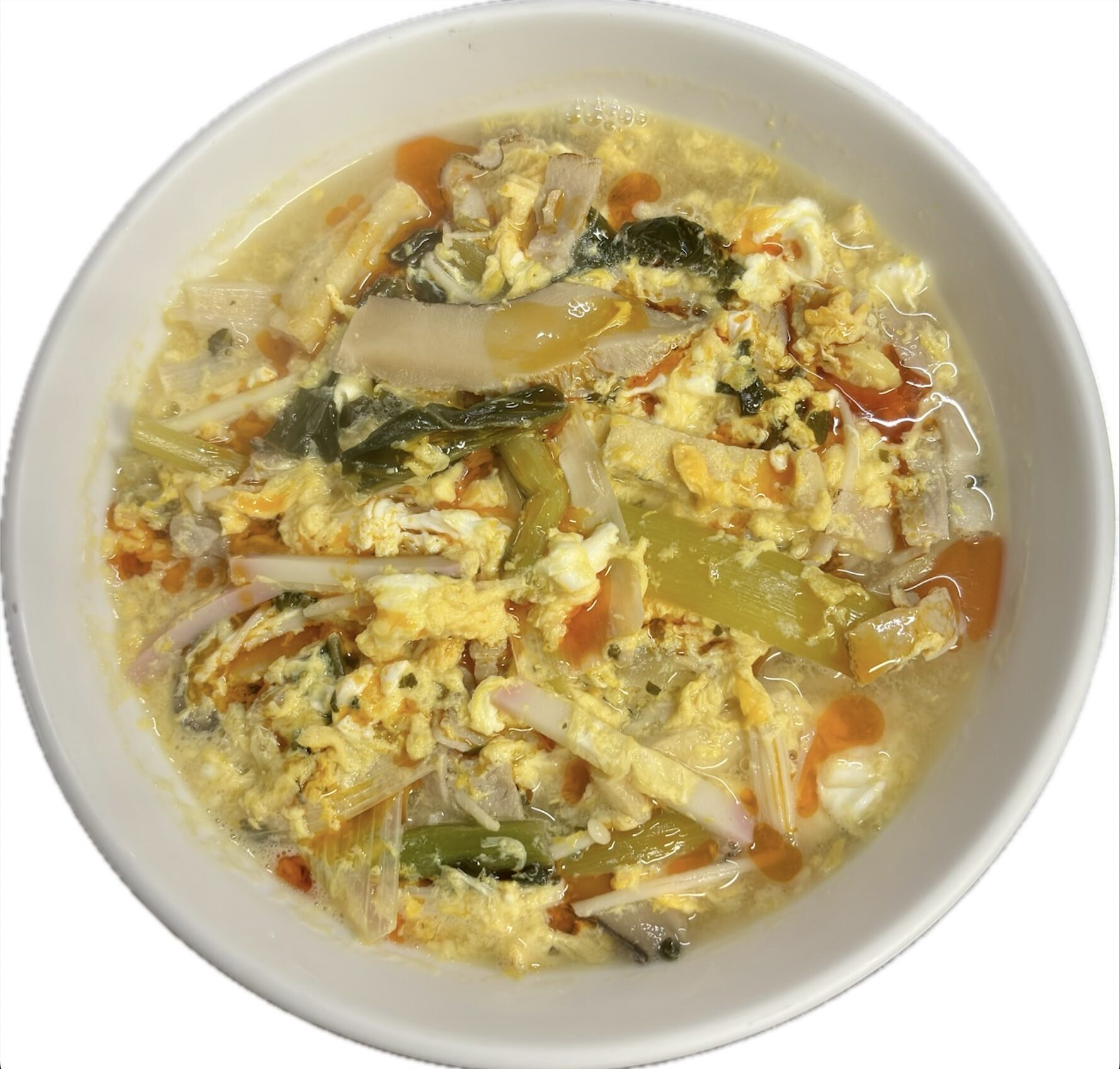 7種類の食材を卵でとじた贅沢な逸品! 旨辛酢辣とうどんのコラボに驚愕必至