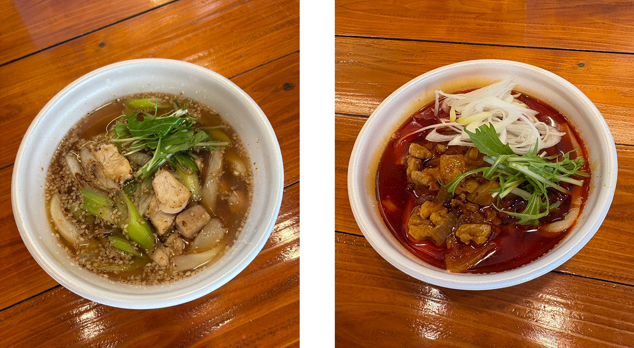 延喜さんといえば、前回にも出品された『特製かれぇうどん』があまりにも有名だが、今回は『鶏肉とネギの胡麻かけうどん』と『大久保レッド』の2種類のうどんが登場。
