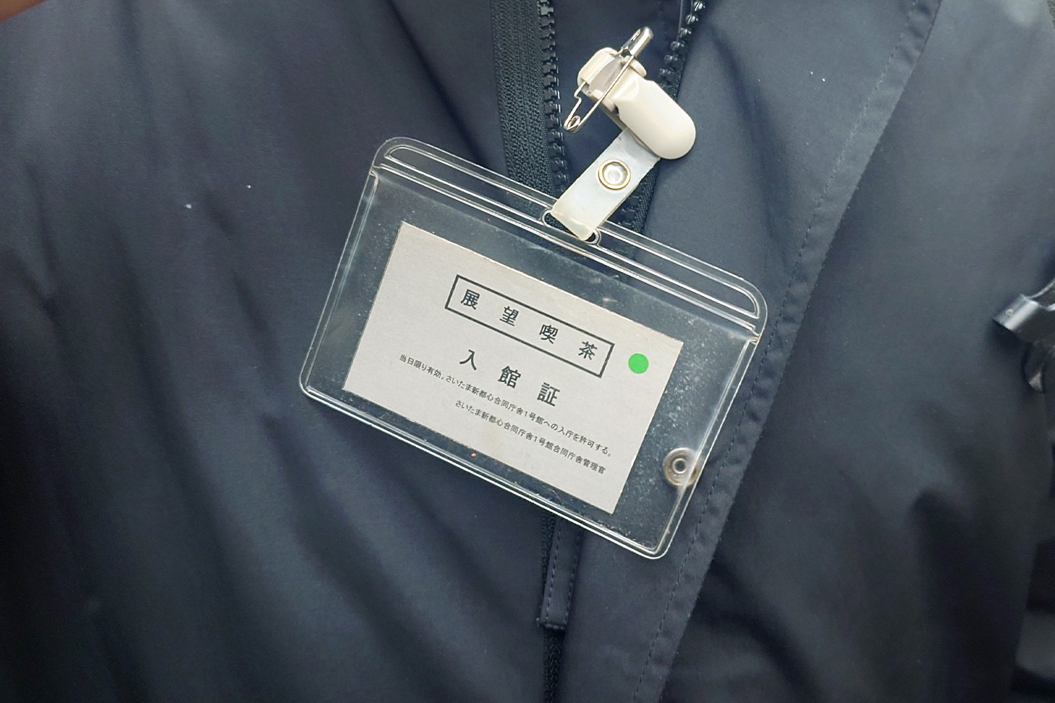 名札を服につけて、警備員のいるセキュリティをとおります。