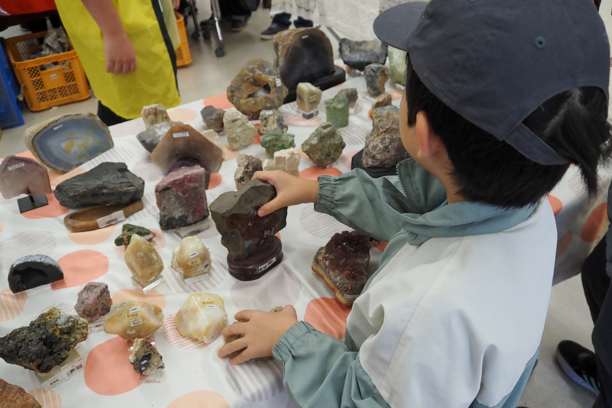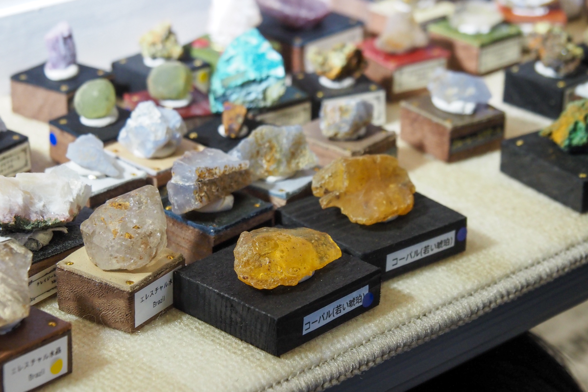 こちらは1つ500円コーナーがあるお店。いろいろな石が並んでいます。UVライトを当てて光る石などもあり、息子は目をキラキラさせて眺めていました。こちらでしばらく息子と悩み、2点購入させていただきました。