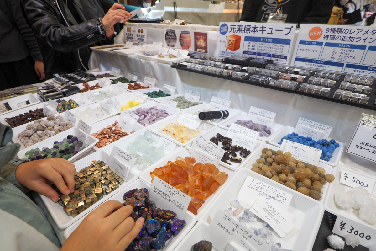 今日から4月5日まで開催される「第14回さいたまミネラルマルシェ」。鉱物や隕石、化石などの販売店が集まるマーケットで、「石」系の展示即売会「ミネラルショー」の一種です。数百円のものから数百万円のものまで、さまざまな鉱物や化石などが販売されています。
