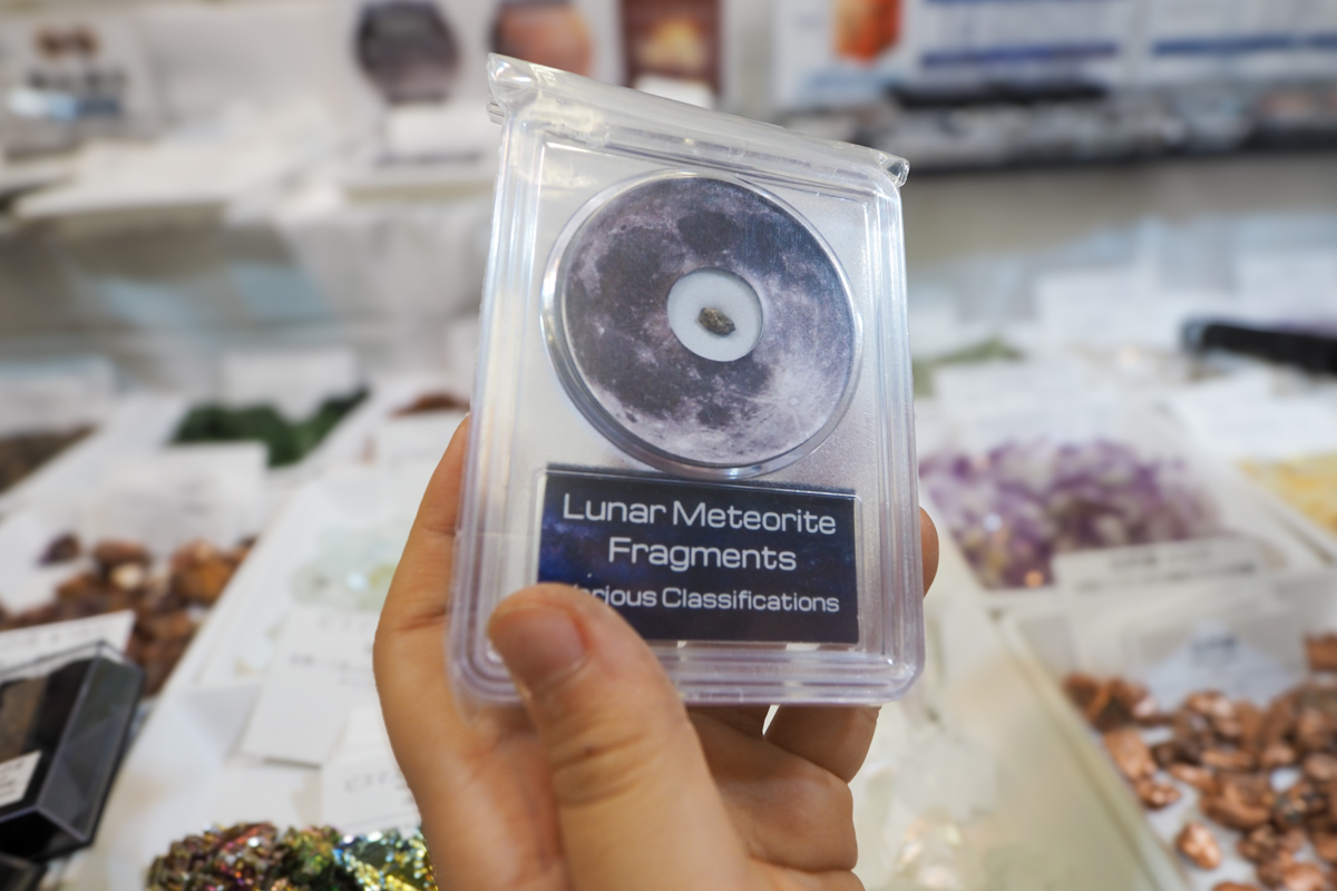 国際隕石学会公認の月隕石&火星隕石も販売されていました。こちらは月隕石で、2022年にアルジェリアで見つかったもの。
