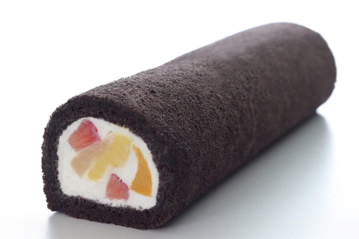 ブラックココアを使用したジェノワーズ生地に、フルーツとカスタードクリームをクレームシャンティーイでサンドした一品です。