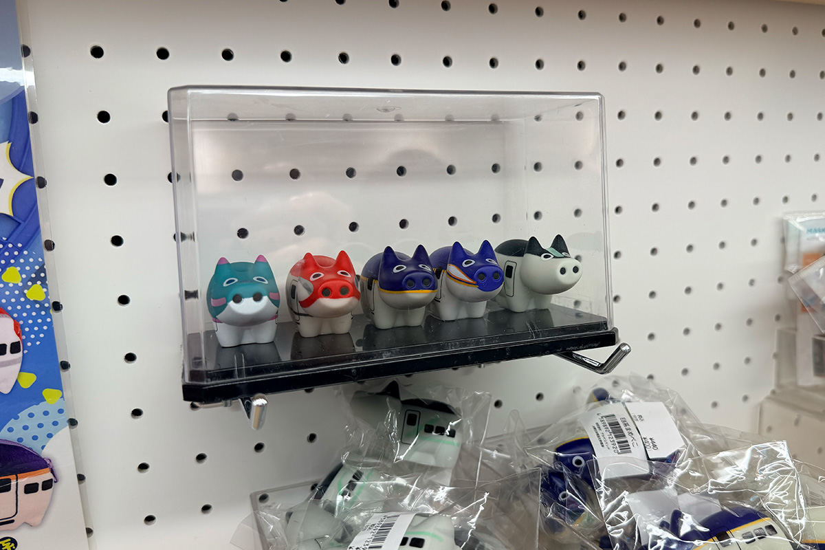 店「新幹線まめべこです!どの子も可愛いですが、ずらっと並べるとさらに魅力が引き立ちますよ。」