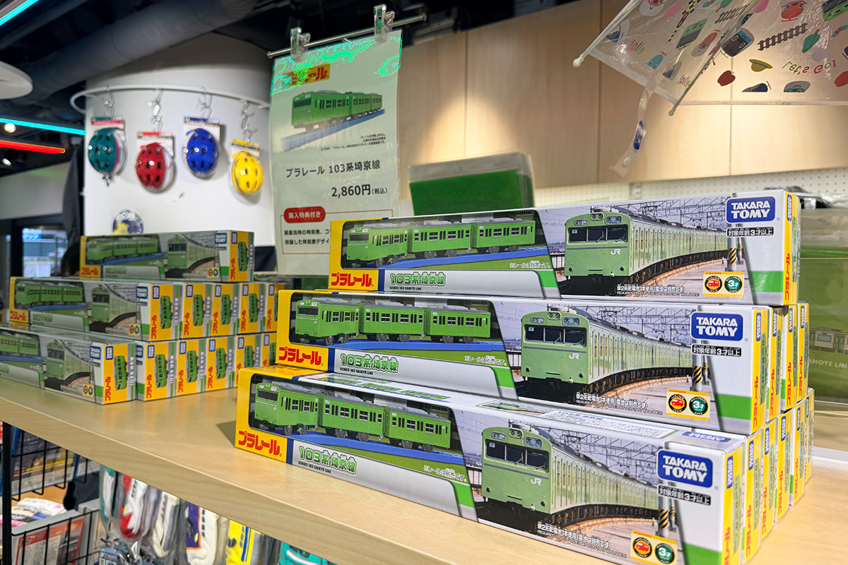 「プラレール103系埼京線」この取材時にも、手に取られているお客さまが多くおりました。