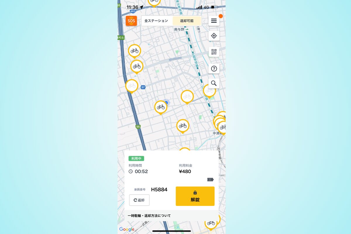 しかし、HELLO CYCLINGは多数のポートがあり、返却が比較的可能。