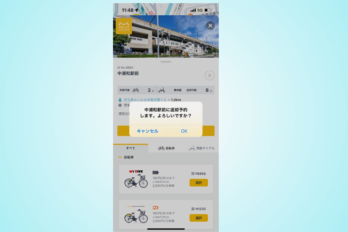 ということで…武蔵浦和で借りた自転車が、別の駅で返却出来るのかをやってみることに。