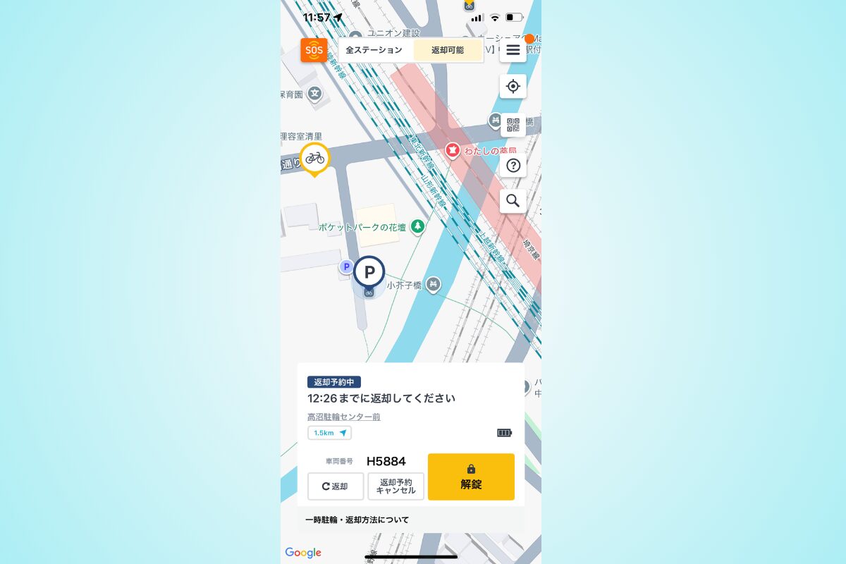 あとは、現地に行き返却を押すと、無事返却が完了します。