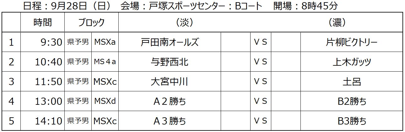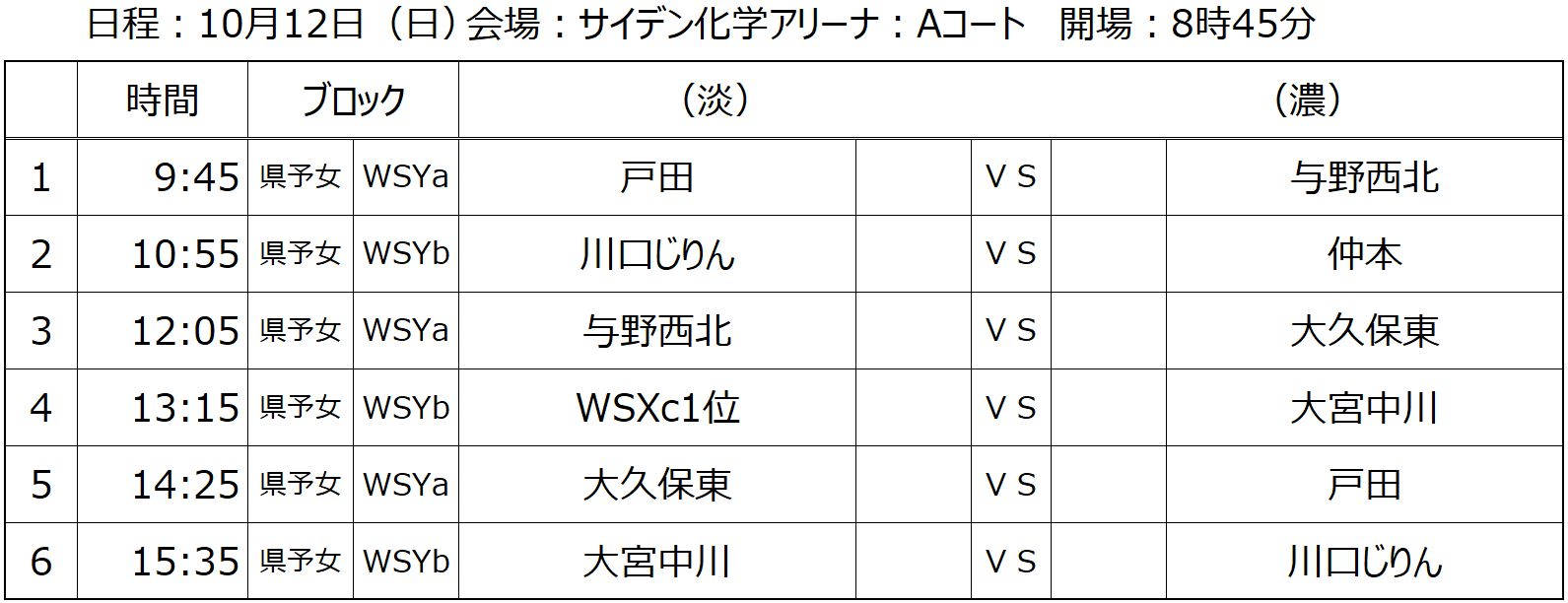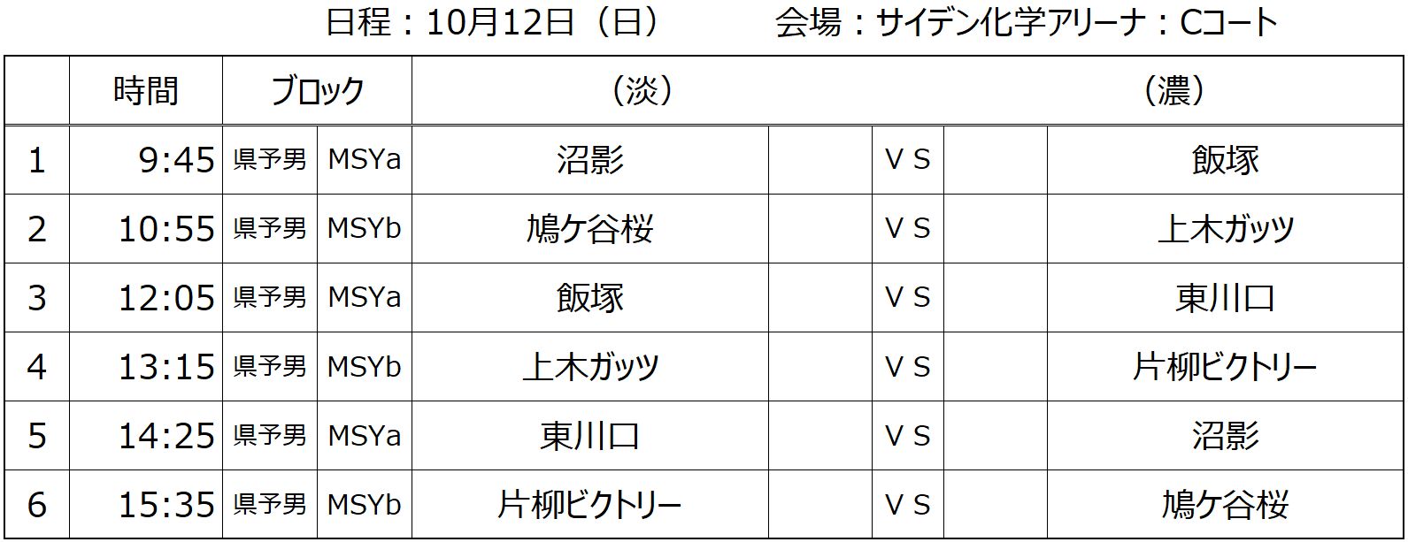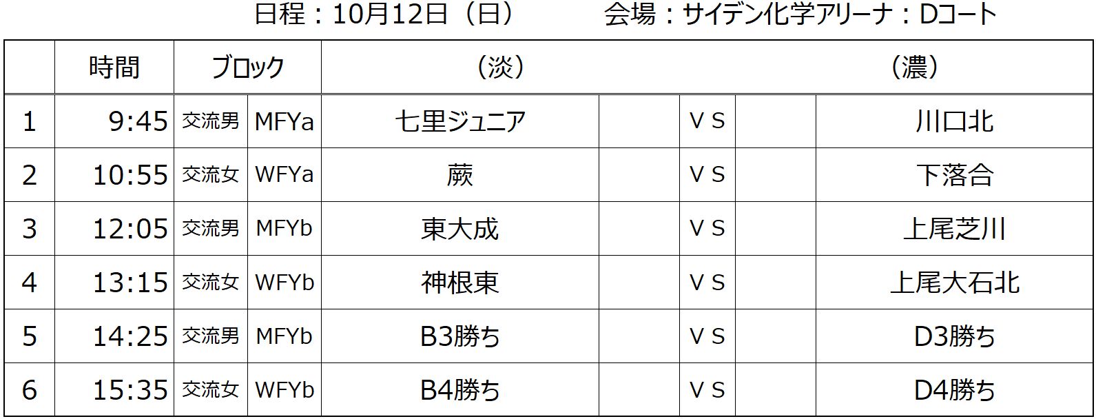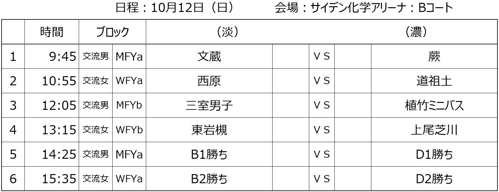 10/13(月・祝)サイデン化学アリーナ Aコート