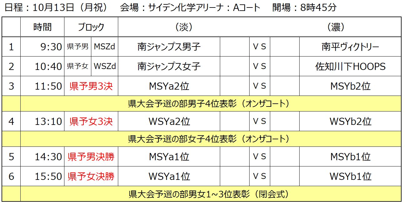10/13(月・祝)サイデン化学アリーナ Bコート