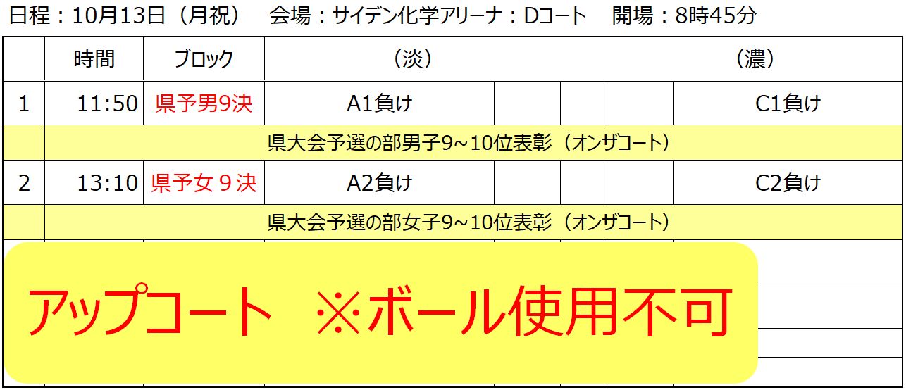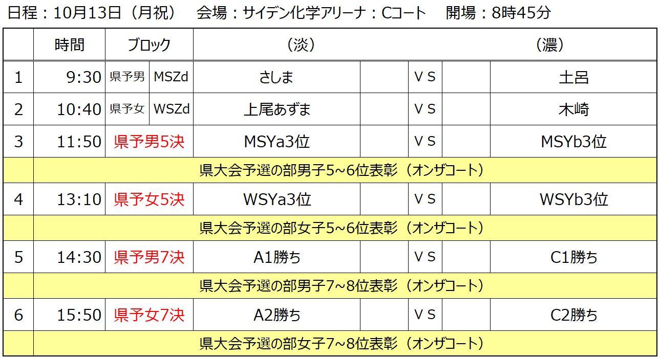10/13(月・祝)サイデン化学アリーナ Cコート