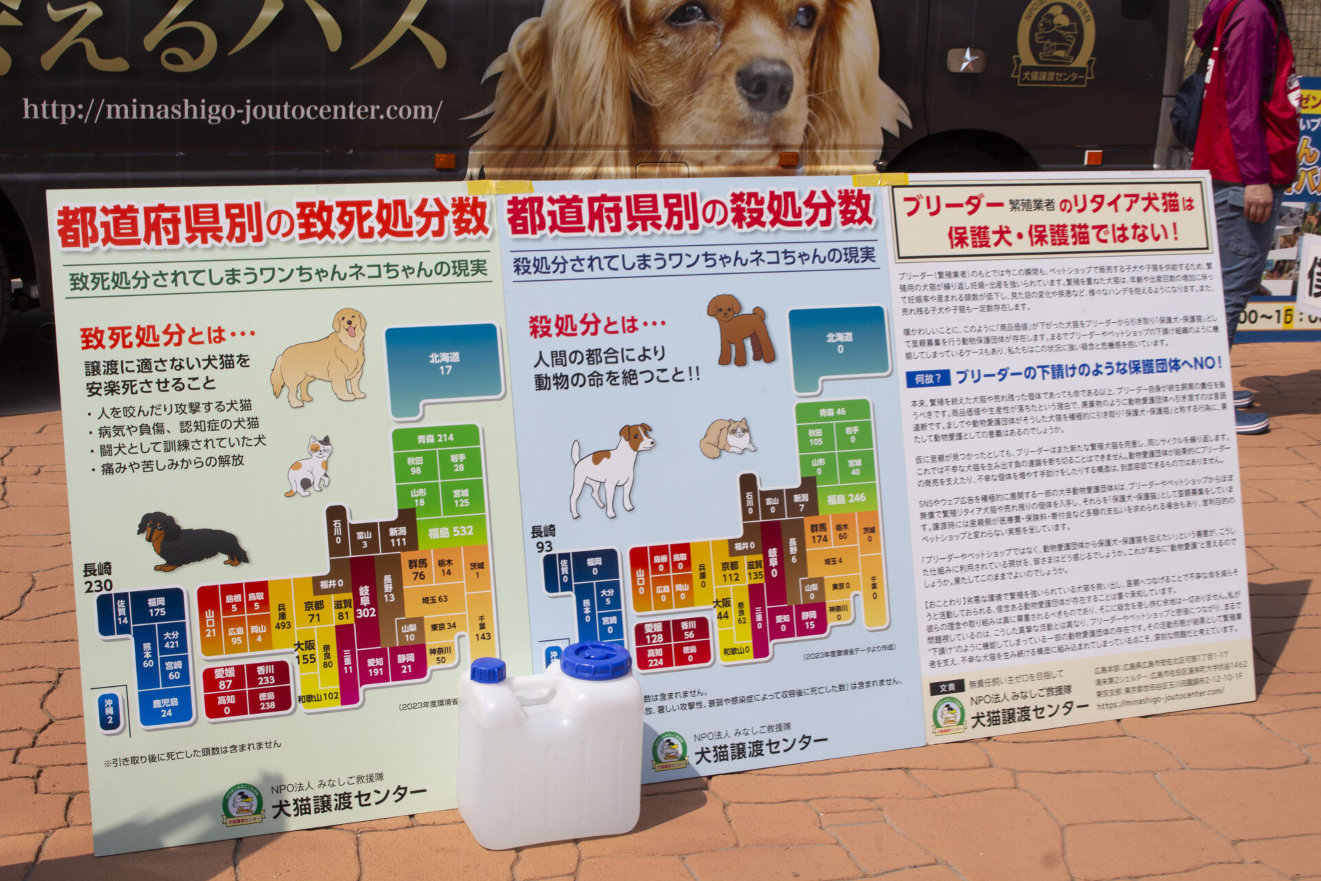 団体さんの中には、保護犬を取り巻く環境の「何が問題なのか」までしっかり説明してくれるブースもありました。会場をぐるりと回った結果、保護犬・保護猫ファーストで考えられた安心できる譲渡会だと確信し、積極的な取材を行うことにしました。