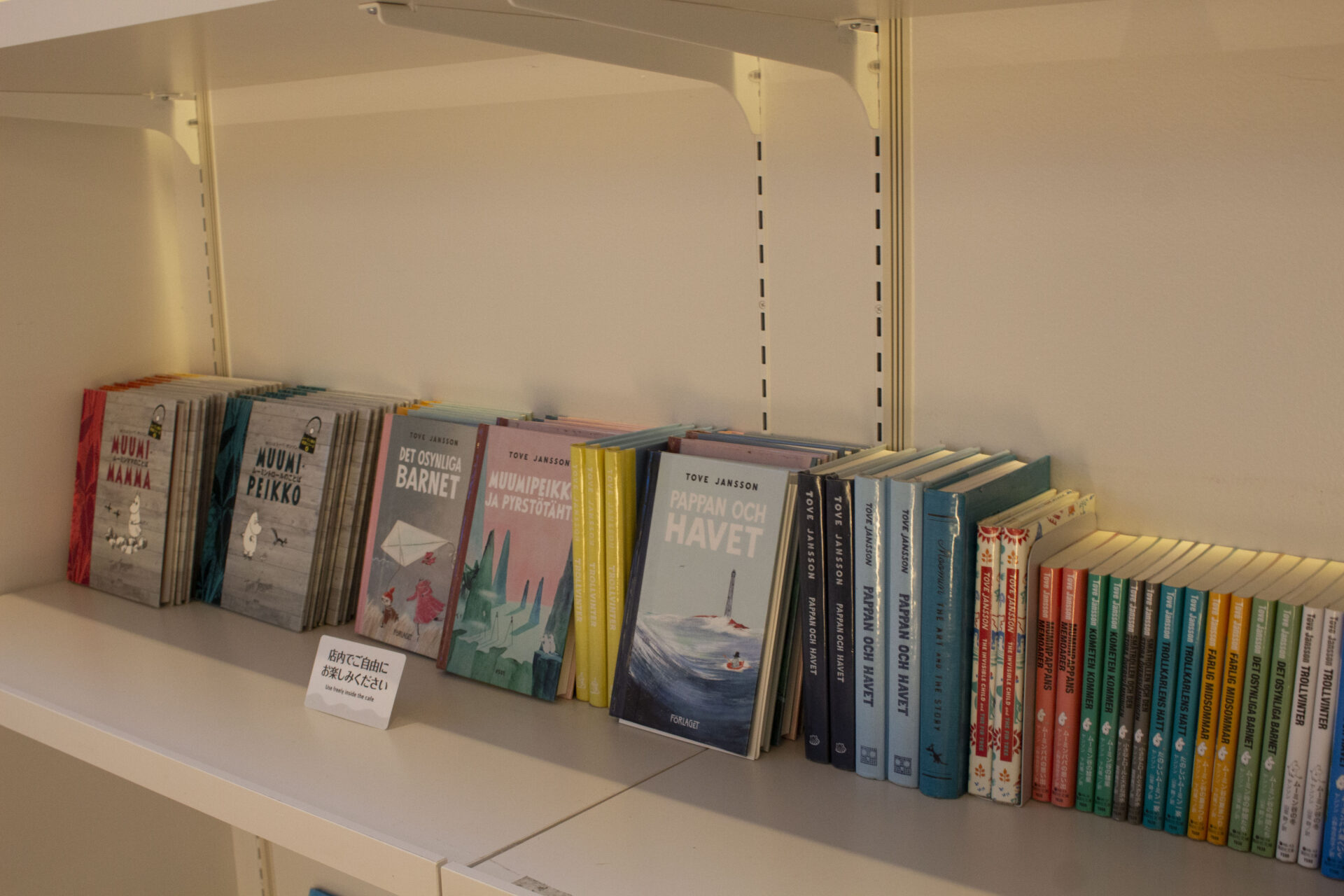 店内では「ムーミン」関連の絵本〜小説までさまざまな作品を読みながら、ゆったりとお過ごしいただけます。