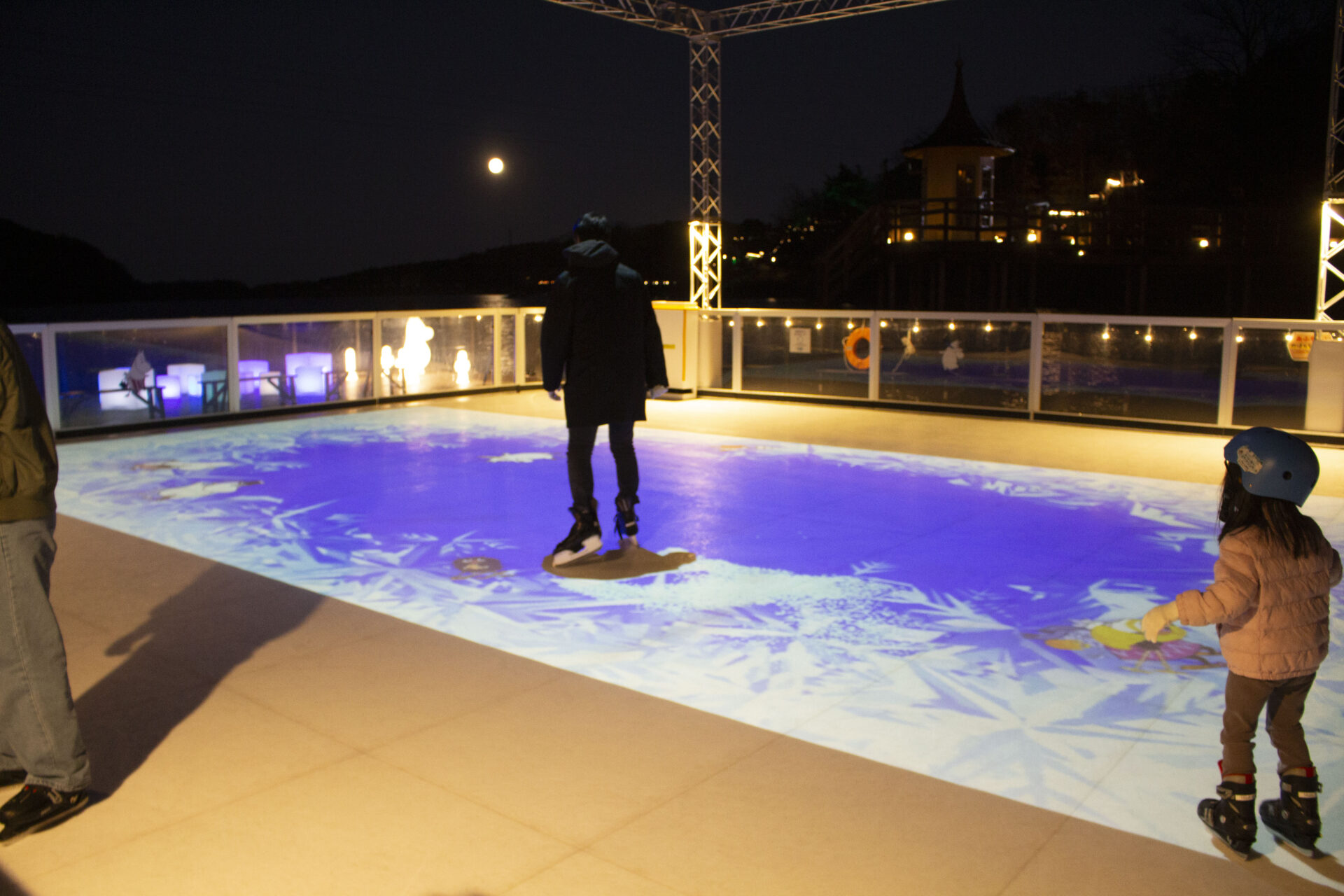 24日、25日の場合は17:55目安で湖上のテラスにある、「ムーミン谷のスケートリンク on The LAKE」を目指してください。