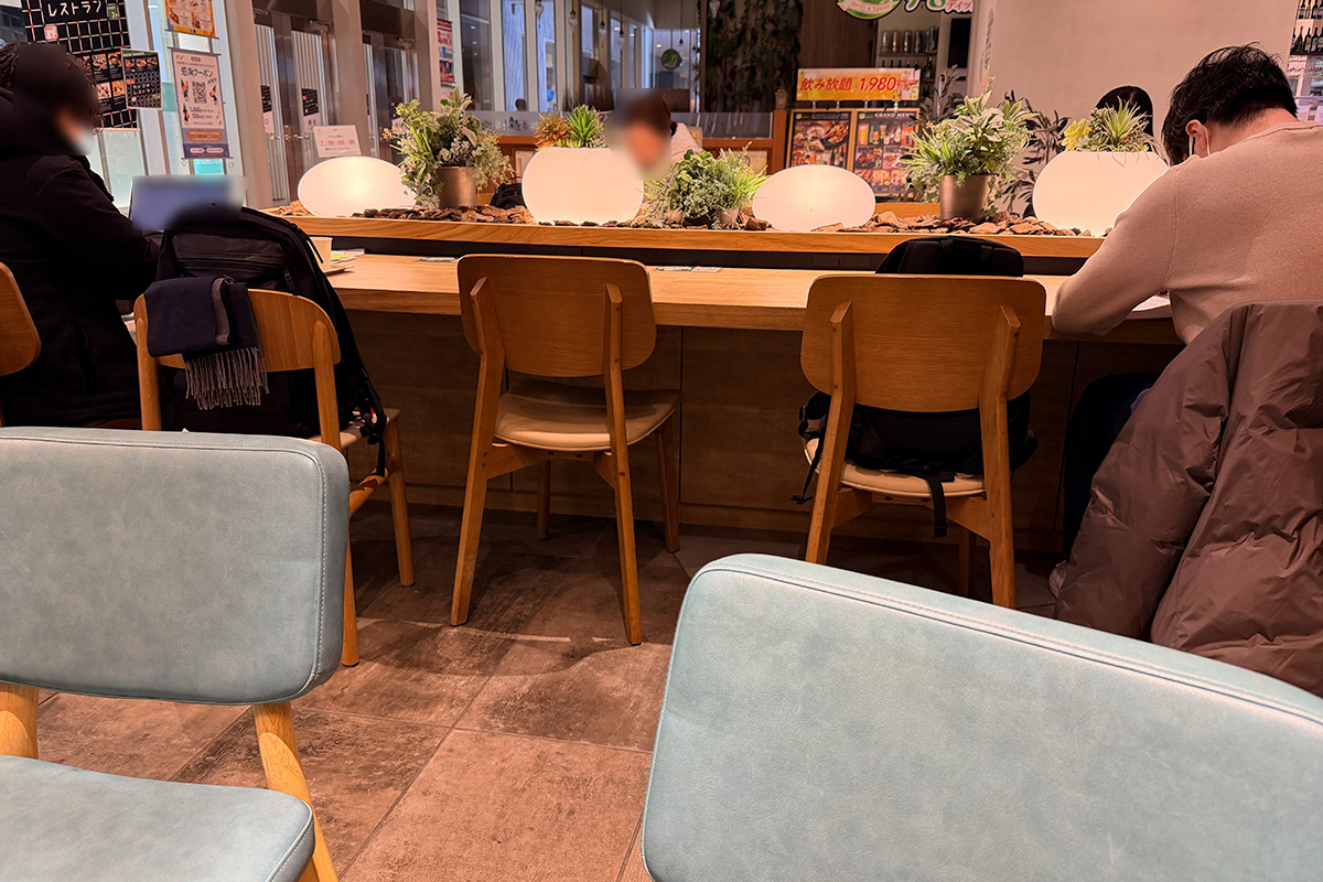 こちらのお店は席のバリエーションが多く、カウンター、テーブル、電源席とお客さんのニーズに合わせた設備の多いお店です。