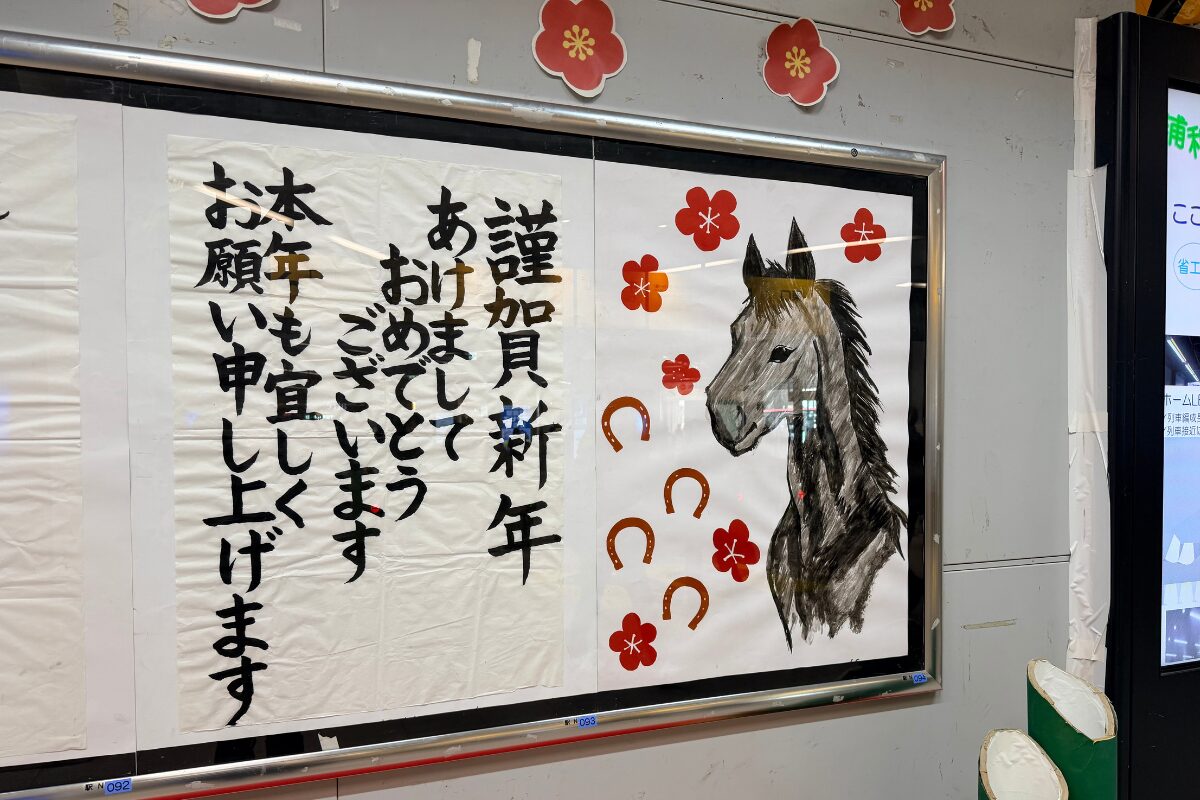 この門松は切符の芯で作りあげたもので、浦和駅の気合いを感じることができます。