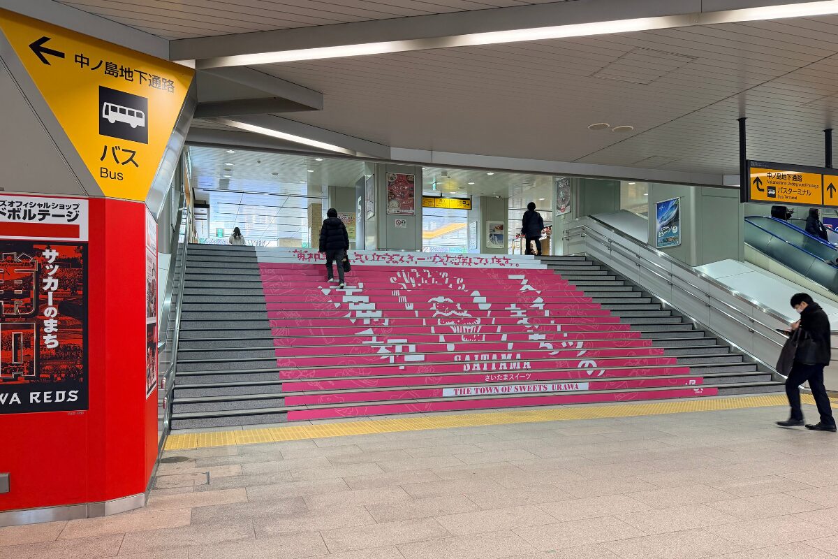 階段の左。この地下道(浦和サッカーストリート)を通ると、スムーズに伊勢丹まで辿りつくことができます。